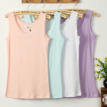 春秋季U型工字女士修身显瘦吊带背心 全棉性感蕾丝花边纯棉打底衫