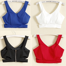 夜店性感露脐短款胸衣V领裹胸上衣拉链打底露脐吊带背心带胸垫
