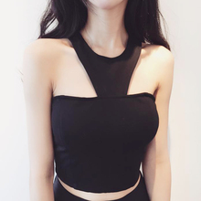 韩版夜店性感紧身裹胸个性镂空挂脖胸衣背心女露脐短款抹胸上衣夏