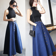 韩版显瘦复古单排扣牛仔半身裙女中长款高腰水洗牛仔裙A字裙伞裙
