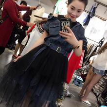 欧洲站2017夏季新款时尚漏肩腰带拼背心假两件网纱连衣裙女