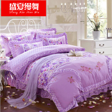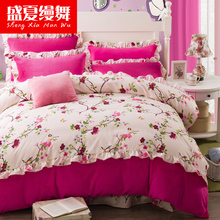 盛夏缦舞 韩式纯棉四件套 印花加绣花 1.5m 1.8m婚庆床品被套