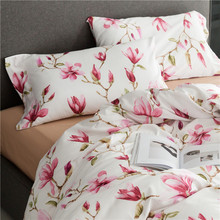 出口高端粉色玉兰花四件套床上用品 60支纯棉长绒棉印花床品套件
