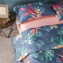 出口欧美简约全棉贡缎四件套绿色棕榈叶60支长绒棉床单式床上用品