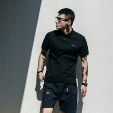 BDCT 黑色刺绣港风Polo衫男 夏天日系复古潮牌修身翻领保罗短袖