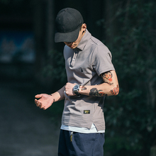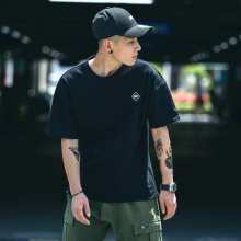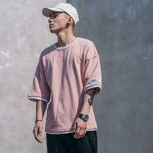 BDCT 欧美高街潮男中袖T恤 日系宽松落肩假两件五分袖纯色男短袖