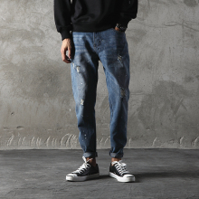 BDCT 春季潮牌破洞牛仔裤男 2017新款宽松显瘦青年做旧休闲长裤