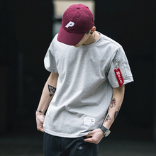 BDCT 欧美潮牌飘带短袖T恤男 日系港风宽松纯棉纯色圆领上衣潮夏