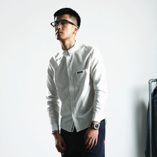 BDCT原创 潮牌白衬衫男长袖 春季青年学生薄款修身男士纯色衬衣潮