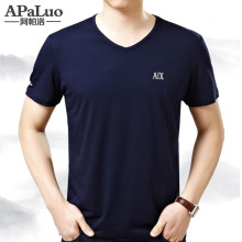中年男士短袖T恤中青年男装纯色V领短袖打底体恤衫夏季短袖t恤男
