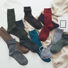 撞色纯棉情侣男女中筒袜子原宿风日系粗线袜复古民族风厚款潮长袜
