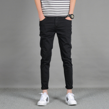 2017春夏青少年简约黑色九分牛仔裤小脚裤潮牌弹力舒适