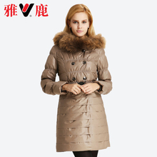 雅鹿羽绒服女中长款修身 貉毛领时尚连帽冬装外套清仓特价YN20430