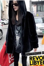 2016包邮新款男女秋冬特价 仿皮草中长款毛毛连帽外套大衣黑色 厚