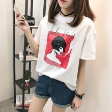 夏装新款韩版宽松短袖T恤女学生纯棉体恤百搭露肩半袖体恤上衣服
