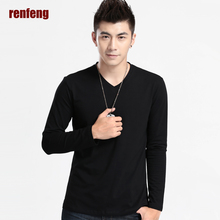 秋冬装新款男士v领长袖t恤 男士纯色莱卡棉T恤修身打底衫男装