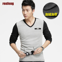 秋冬装新款加绒打底衫 男士保暖内衣加绒加厚V领长袖T恤男装潮