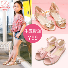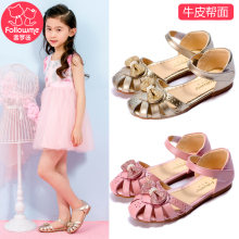 富罗迷女童鞋凉鞋公主鞋真皮2017夏季新款鱼嘴韩版儿童凉鞋女大童