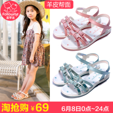 富罗迷女童凉鞋真皮2017夏季新款女大童韩版公主鞋儿童凉鞋女童鞋