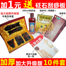 水牛角刮痧板五件套装+刮痧油+刮痧书+穴位图瘦脸刮痧板工具 包邮