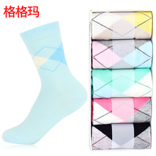 春夏短袜棉袜女袜 韩版可爱女袜 菱形格中筒吸汗棉袜女士袜子