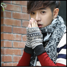 2015款冬季男士手套学生韩版时尚加厚加绒连指打字半指手套女潮
