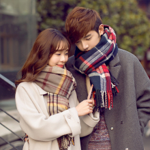 圣诞节礼物韩版秋冬流苏披肩围巾冬季毛线男女格子保暖情侣围巾潮