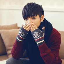 秋冬时尚男士雪花手套 冬天韩版青少年情侣毛线加绒保暖手套女潮