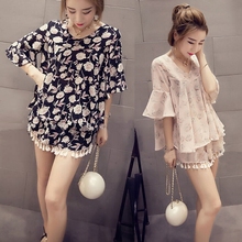 2017春夏季新款套装女时尚休闲韩版雪纺衫高腰半身裙小香风两件套