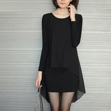 卷皮折扣网9.9 秒杀女装楚楚街2015冬装加绒长袖假两件雪纺连衣裙