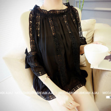小清新白色露肩棉麻上衣2016春夏新款宽松钩花镂空蕾丝衫短袖上衣