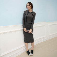 2017春装新款长款卫衣女秋冬修身显瘦连帽连衣裙长袖休闲带帽长裙