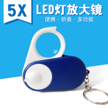 高倍迷你手持便携式放大镜带灯小型袖珍随身可折叠高清5倍带LED灯