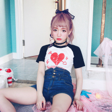 BOBON21超百搭显瘦显胸 插肩袖Heartbroken心碎T恤 短款T1378