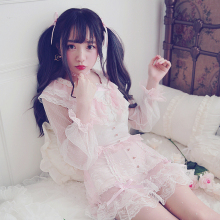 Bobon21梦幻小仙女 前后v花边系带蕾丝点点衫 棉质内衬透气T1462