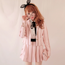 BOBON21独家设计 复古学院风竖条纹 西装外套 贵族紫&嫩粉 C1177