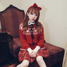 BOBON21圣诞先行红色系 爱心图案花边裙摆样毛衣 T1296
