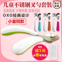 美国OXO tot婴儿不锈钢叉子饭勺儿童餐具套装 宝宝餐具训练勺叉