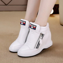 2016秋冬新款侧拉链白色高帮鞋女内增高休闲鞋韩版厚底运动鞋女鞋