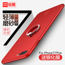 苹果7plus手机壳iPhone7套超薄磨砂硬壳带指环扣支架红色女潮男7p