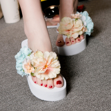 原创夏季新款花朵沙滩拖鞋防滑松糕厚底坡跟人字拖韩版度假凉鞋女