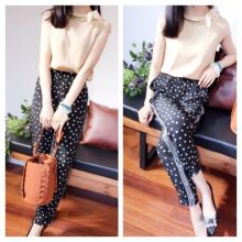 沐遥 或优雅通勤 或轻松摩登 显瘦波点双绉真丝裤 K7218