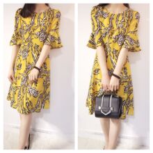 沐遥 优雅明媚 轻尚显瘦 极衬肤白双绉真丝印花连衣裙Q15333