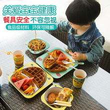 丫崽环保竹纤维儿童餐具 餐盘婴儿卡通饭碗宝宝碗勺叉子5件套装