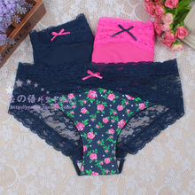 出口单 甜美漂亮无痕大码蕾丝性感中低腰三角内裤瑕疵款清仓
