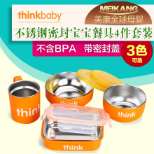 Think baby不锈钢密封宝宝餐具水杯汤碗餐盒4件套装