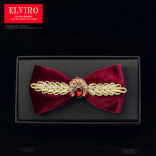 Elviro红色2017新品丝绒黑色百搭 结婚礼服新郎领结金属装饰鹿角