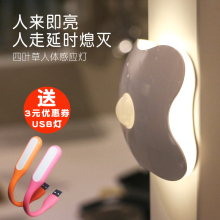 四叶草人体感应灯LED小夜灯充电卧室床头声控光控壁灯喂奶衣柜灯