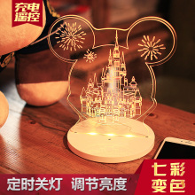 创意七彩立体3D遥控充电led小夜灯氛围小台灯儿童卡通卧室床头灯