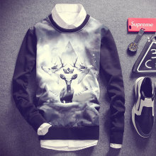 春秋加绒加厚圆领印花卫衣小鹿外套学生套头衫男装棒球服流行上衣